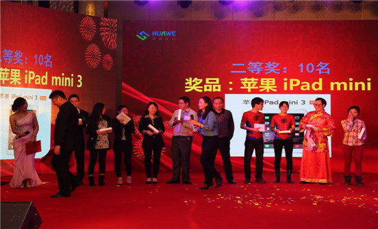 年會(huì)表演節(jié)目精彩紛呈,無(wú)論是開場(chǎng)大鼓、舞蹈、歌曲、小品、還是雙簧、啞劇、情景劇,均完美詮釋了華威人的才華和個(gè)性。激動(dòng)人心的抽獎(jiǎng)活動(dòng)讓所有同事熱血沸騰,蘋果imacbook、iphone6、ipadmini3等數(shù)十個(gè)高大上的獎(jiǎng)品、歡樂(lè)的晚宴、美酒佳肴、觥籌交錯(cuò)... 6個(gè)小時(shí)的年度盛會(huì)讓大家一直尖叫不停,驚喜不斷。華威人今天所有的付出與努力,都將在我們一路同行中變得更加美好!變得更加值得期待!