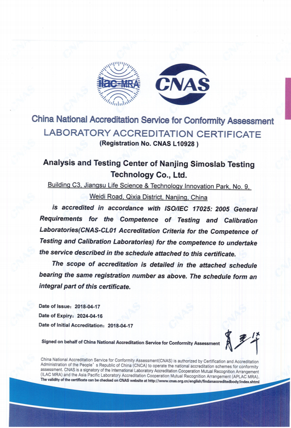 西默思博目前已列入CNAS的獲準(zhǔn)認(rèn)可機(jī)構(gòu)名錄并在CNAS網(wǎng)站電子注冊(cè)、發(fā)布、接受監(jiān)督,為參與國(guó)際間合格評(píng)定機(jī)構(gòu)認(rèn)可的雙邊、多邊合作交流提供平臺(tái),提高西默思博檢測(cè)中心的知名度和影響力,增強(qiáng)檢測(cè)技術(shù)的國(guó)際市場(chǎng)競(jìng)爭(zhēng)力,推進(jìn)檢測(cè)中心與國(guó)際接軌。