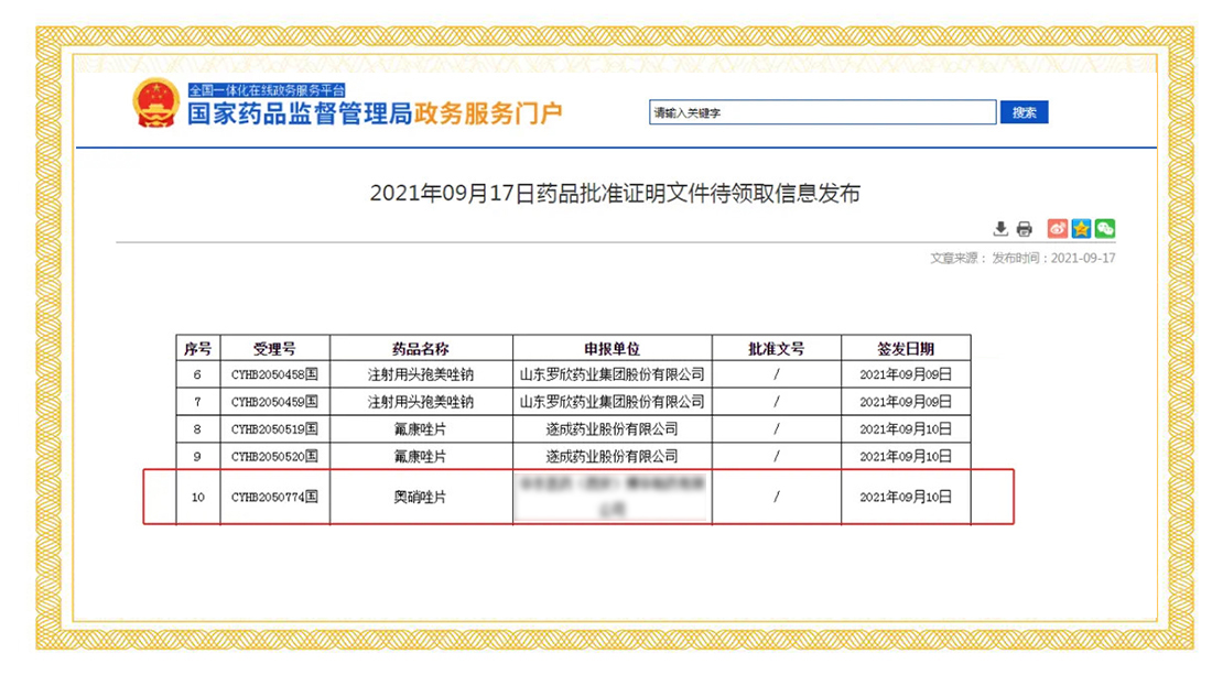 2021年9月10日,國家藥品監(jiān)督管理局正式發(fā)布通知,華威醫(yī)藥接受委托申報(bào)的奧硝唑片項(xiàng)目正式通過仿制藥質(zhì)量和療效一致性評價(jià)。