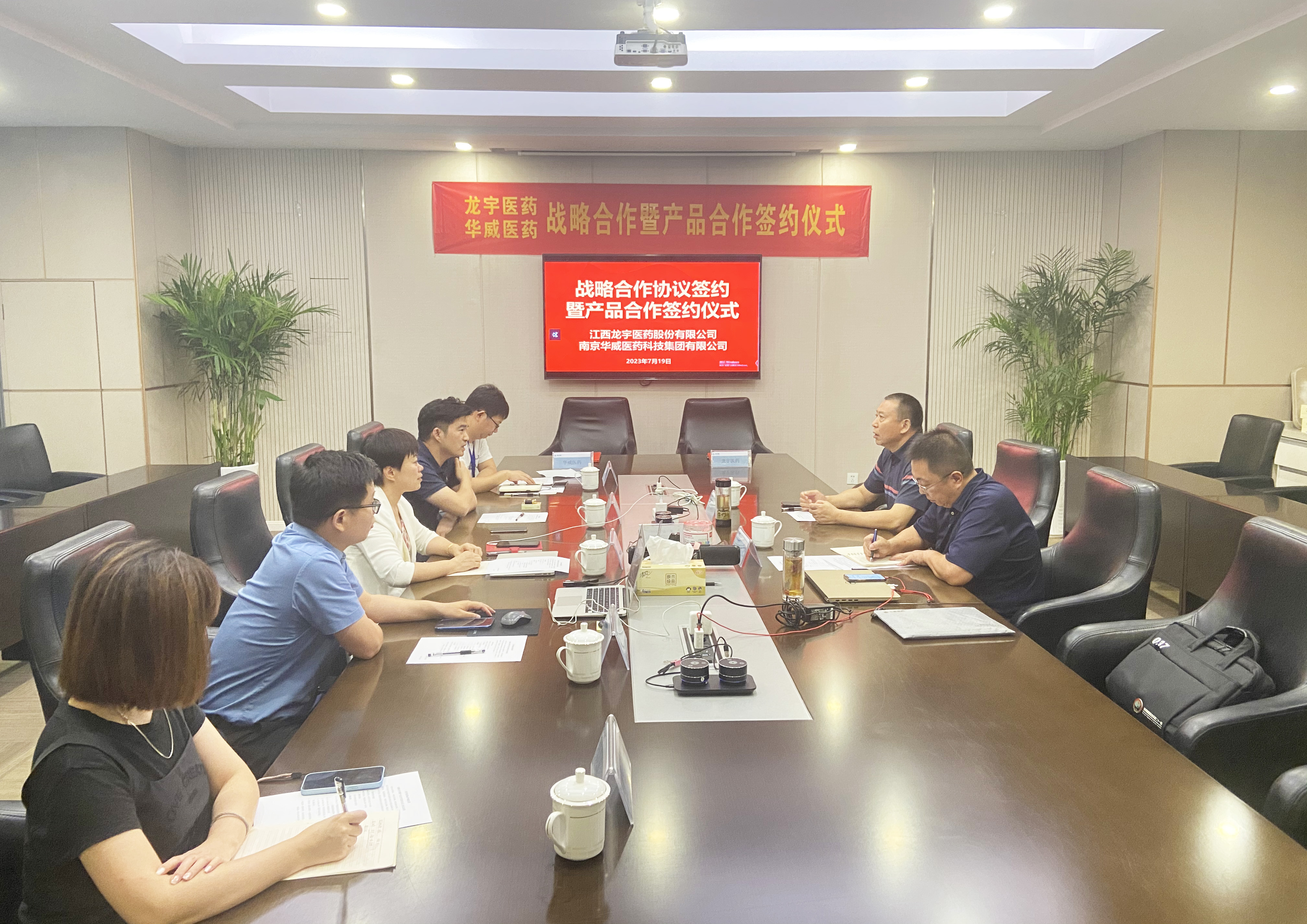 7月19日,江西龍宇醫(yī)藥股份有限公司(以下簡稱龍宇醫(yī)藥)與南京華威醫(yī)藥科技集團有限公司(以下簡稱華威醫(yī)藥)在華威醫(yī)藥總部簽訂了戰(zhàn)略合作協(xié)議。龍宇醫(yī)藥董事長龔鵬宇、遠超醫(yī)藥副總經(jīng)理張鵬,華威醫(yī)藥董事長黃輝、總經(jīng)理焦培想,禮華生物總經(jīng)理胡漢高等共同出席并見證簽約儀式。